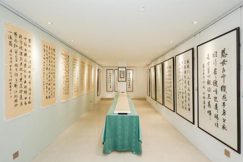 何锡万性格沉稳,为人谦逊低调。字如其人,他十分注重夯实书法的基本功。他从楷书入手,反复临摹颜真卿,欧阳询等大师的经典碑帖。掌握楷书规律后,又深入研习行书和隶书,特别是钟鹞、张旭及汉隶的精髓,力求将古人之法内化于心。同时他还积极吸收现代书法的创作理念,通过大量创作和反复推敲,不断尝试融入个性化的表达语言。步入他的书法展厅,墙如景,字如海,观者且赏且游沉浸其中。字境、意境和心境交融,从中尽享笔墨情趣。