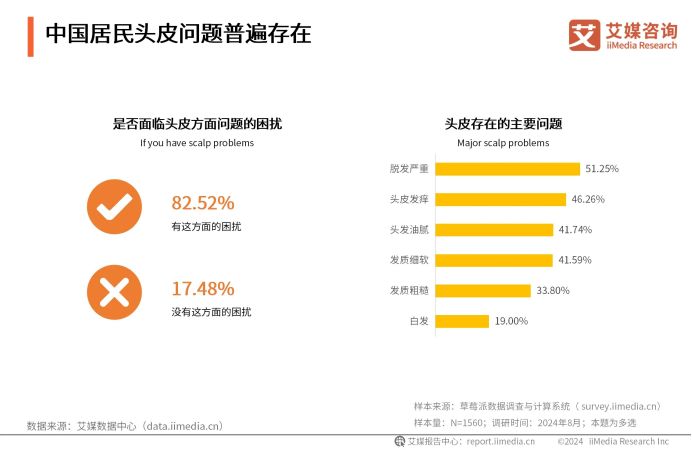 在当下的社会审美中,蓬松的发型能够让头部看起来更加饱满立体,修饰脸型,进而备受青睐。而现代生活中,人们面临着各种导致头发扁塌的问题。iiMedia Research(艾媒咨询)调研数据显示,41.74%的消费者存在头发油腻的困扰。