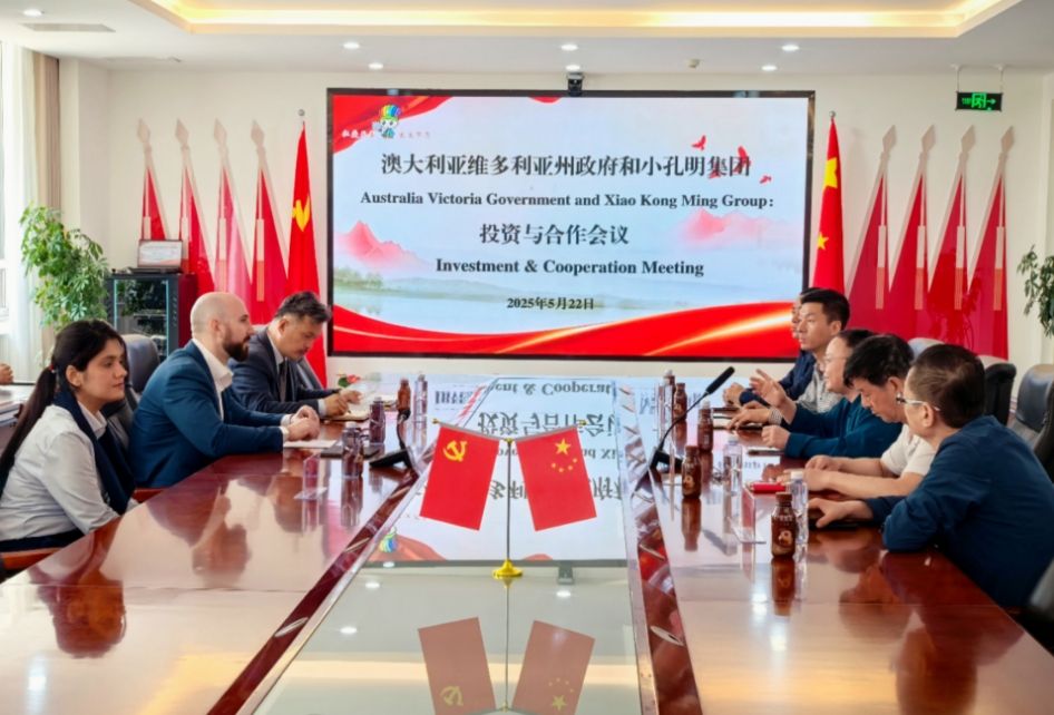 2025年5月22日,澳大利亚维多利亚州政府与小孔明集团投资合作会议在小孔明集团银川小孔明学校举行。此次会议以“绿色创新 共赢未来”为主题,中澳双方就资源整合,推动全球能源转型与教育国际化进程,共同构建“零碳供暖+顶尖学府”示范项目等议题进行深度磋商。