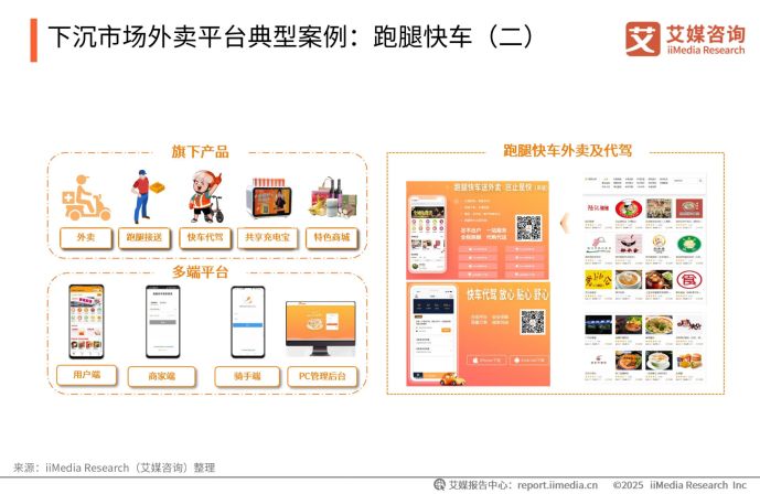 尽管头部平台如美团、饿了么虽加速向乡镇渗透,但受限于配送成本高、本地化服务响应慢等问题,难以完全覆盖乡镇市场的细分需求。此时,跑腿快车等本土平台凭借“土生土长”的本地化优势应运而生。