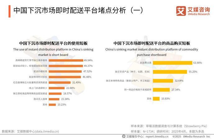 然而,看似繁荣的市场背后暗藏多重痛点。配送端,农村地区地广人稀、地形复杂,农忙季节运力需求激增与路网稀疏的矛盾凸显,近五成用户遭遇过高峰期骑手短缺、配送站点不足的问题,超六成认为起送费偏高。服务体验层面,地址标识模糊导致骑手反复确认、商品随意丢放等现象困扰近七成用户,包装破损、临期商品甚至假冒伪劣问题也时有发生。售后环节,平台、商家、骑手三方责任划分不清,超八成用户遇到过商品损坏时的推诿扯皮,而客服权限受限进一步降低了问题解决效率。