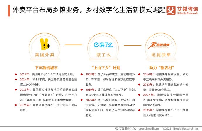 在消费结构升级背景下,一二线城市外卖市场趋近饱和,而乡镇市场成为新增长极,政策与市场的双重驱动,正推动即时配送行业向纵深发展。