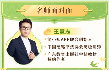 王慧志老师深耕硬笔书法教育十余年,其独创的 “快乐学习心法” 已帮助超百万学子实现字迹蜕变,甚至被家长们亲切地称为 “卷面加分神器”。作为中国硬笔书法协会高级讲师、广东教育出版社字帖教材特约作者,他的教学体系不仅注重书写技巧的提升,更强调通过汉字文化培养孩子的审美情趣与专注力。