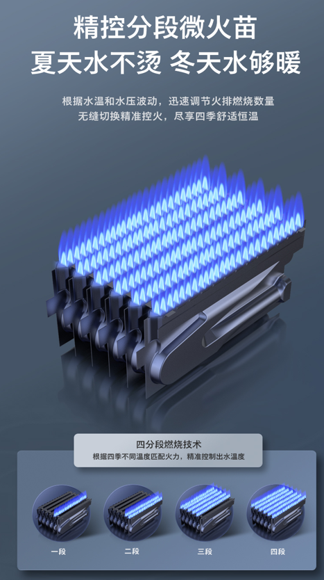 传统燃气热水器单一的控温逻辑,常导致夏季水温烫人、冬季加热不足。飞利浦 AWH6104/93 搭载水气双调与四分段微火苗技术,进口 CPU 根据进水温度实时动态调节燃气阀开度与水量,配合四分段火力智能切换,夏季小火稳控不烫肤,冬季全负荷运行确保水温恒定。旁通混水技术更是贴心,短暂关闭龙头后重启,自动混入冷水中和余热,彻底杜绝启停瞬间的水温骤变。此外,风冷无盘管热交换器设计,有效防止冷凝水生成,大大提升防锈蚀、防漏性能,显著延长使用寿命。