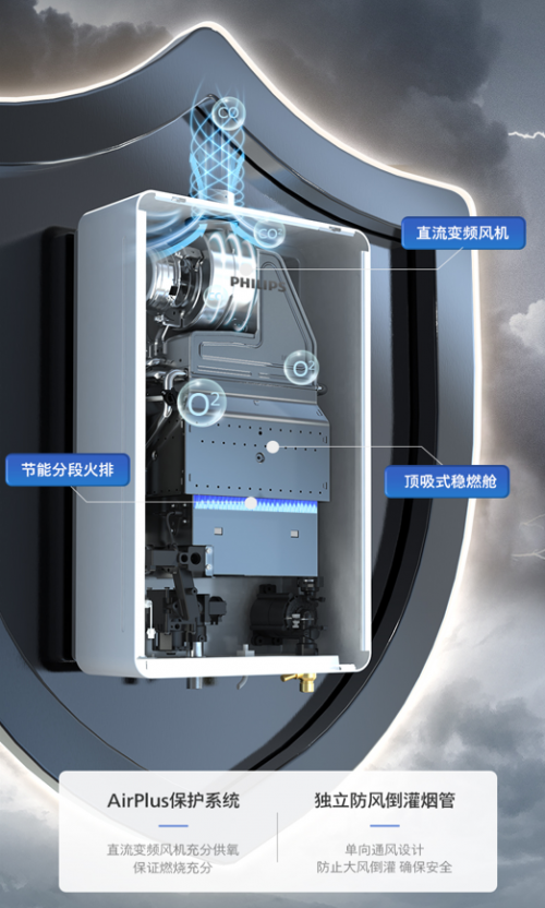 飞利浦 AWH6104/93 燃气热水器自开机起便开启全面自检,对水、电、气进行深度维保,实现人、机、环境三维防护,从源头消除安全隐患。其高效抗风能力达 300Pa,相当于 9 级抗风,配合三重防冻设计,即便遭遇极端天气,也能稳定供应热水,给予用户全天候的安心守护。