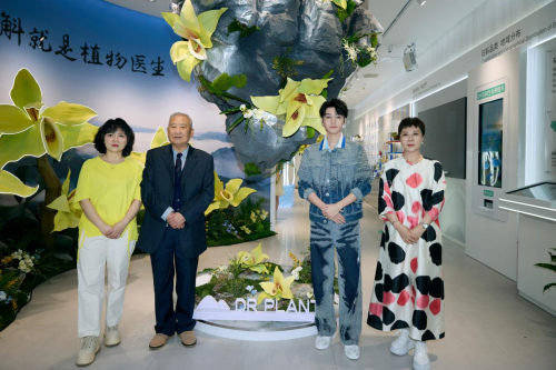 人物从右至左依次为:植物医生集团副总裁Julie女士,植物医生品牌全球面膜防晒代言人王俊凯,中国民族植物学创始人、植物医生首席科学家裴盛基,植物医生华南直营大区总监陈弯