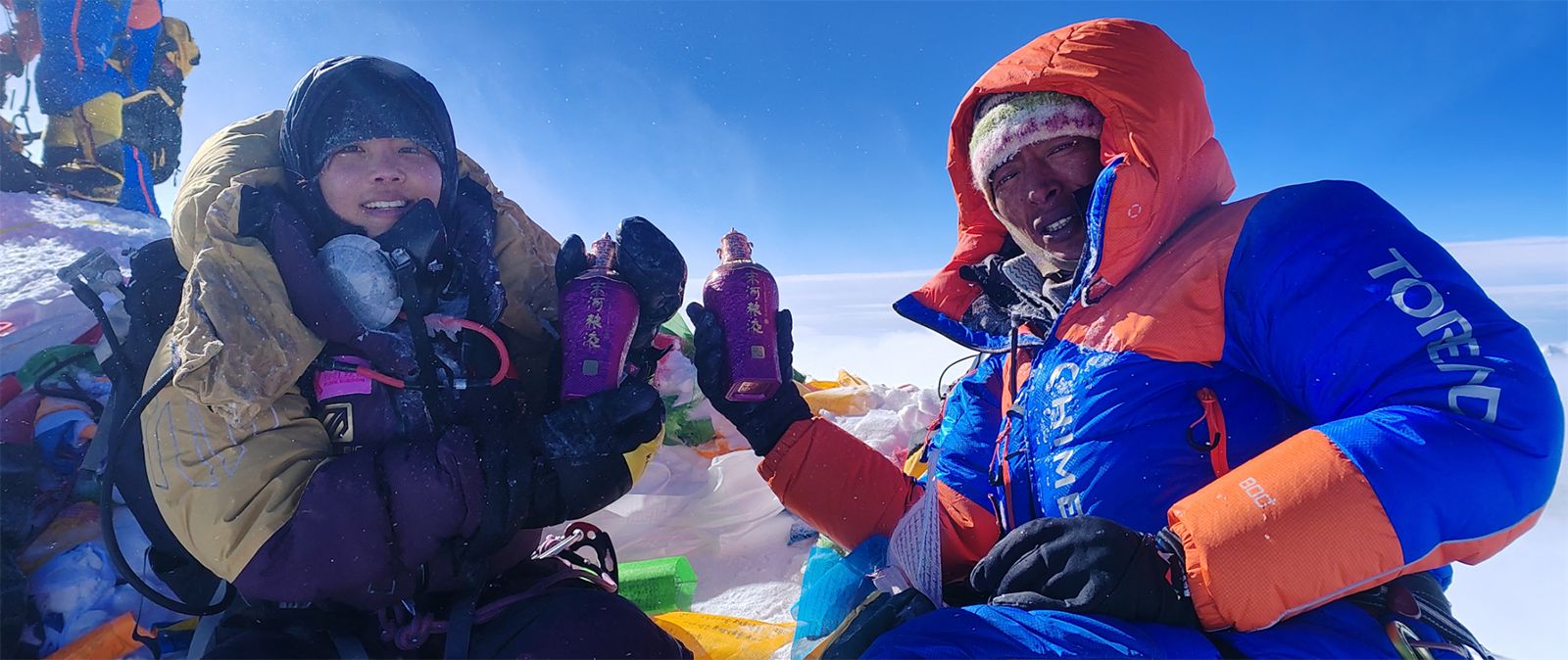 值得一提的是,和孙宁一同登顶珠峰的,还有中国名酒宋河粮液高端巅峰作品——宋河粮液·紫气东来,这也是豫酒第一次登顶珠峰。