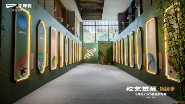2024年,千年舟与铜雕非遗大师朱炳仁、苏绣非遗传承人姚建萍,结合非遗元素进行跨界设计共创,推出锦绣苏韵等花色产品;与中国美院启动首届花色及应用设计大赛,吸引全国38所高校、12000余名设计专业师生共同参与,进一步升级“纹艺觉醒”IP。