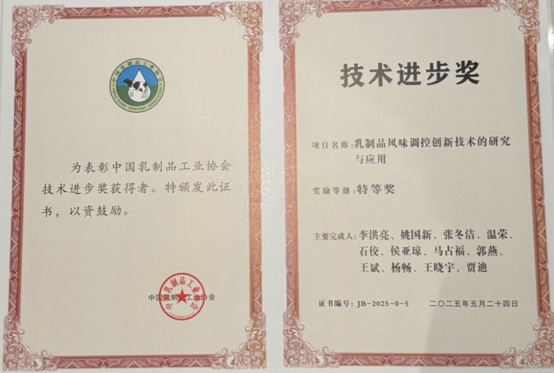 在本届大会上,蒙牛携一系列的亮眼成果荣获9项中国乳制品工业协会技术发明奖及技术进步奖,赢得了行业和协会的认可,其中,蒙牛“乳制品风味调控创新技术的研究与应用项目”荣获技术进步奖特等奖。