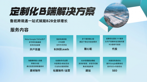 在跨境电商行业加速变革的今天,流量获取成本高、平台规则频繁变动、用户运营效率低下等问题,成为中国卖家出海的核心痛点。《2023 中国跨境电商白皮书》显示,亚马逊平均 CPC 同比上涨 22%,而独立站通过 "SEO + 社媒 + 红人" 组合拳,获客成本降低 18%。如何在流量去中心化、品牌竞争加剧的背景下破局?蓝标传媒旗下蓝瀚互动推出的一站式出海营销平台 ——鲁班跨境通,以广告开户与代投服务为核心抓手,为卖家构建从流量获取到转化沉淀的全链路解决方案。