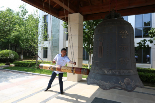 参观结束后,全体党员齐聚教育基地廉政广场,举行庄重的敲钟仪式。区局党总支书记用力敲响廉洁警钟,三声浑厚的钟声穿透长空、涤荡心扉,寓意“以案为鉴、以钟为戒、以廉为本”。