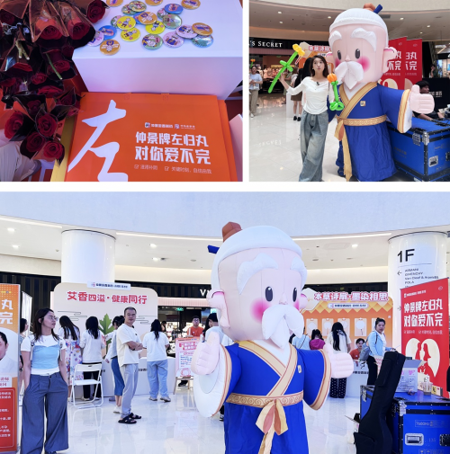 在杭州城西银泰,活动以"西湖漫步不累,左归能量加倍,仲景左归丸对你爱不完"为主题。活动现场,本草垂钓互动体验、DIY本草诗扇、亲自手搓艾绒制作艾条、霉运全消手工香囊、爱的棉花糖让快乐加倍五大互动挑战,边玩边体验,享受中式养生。