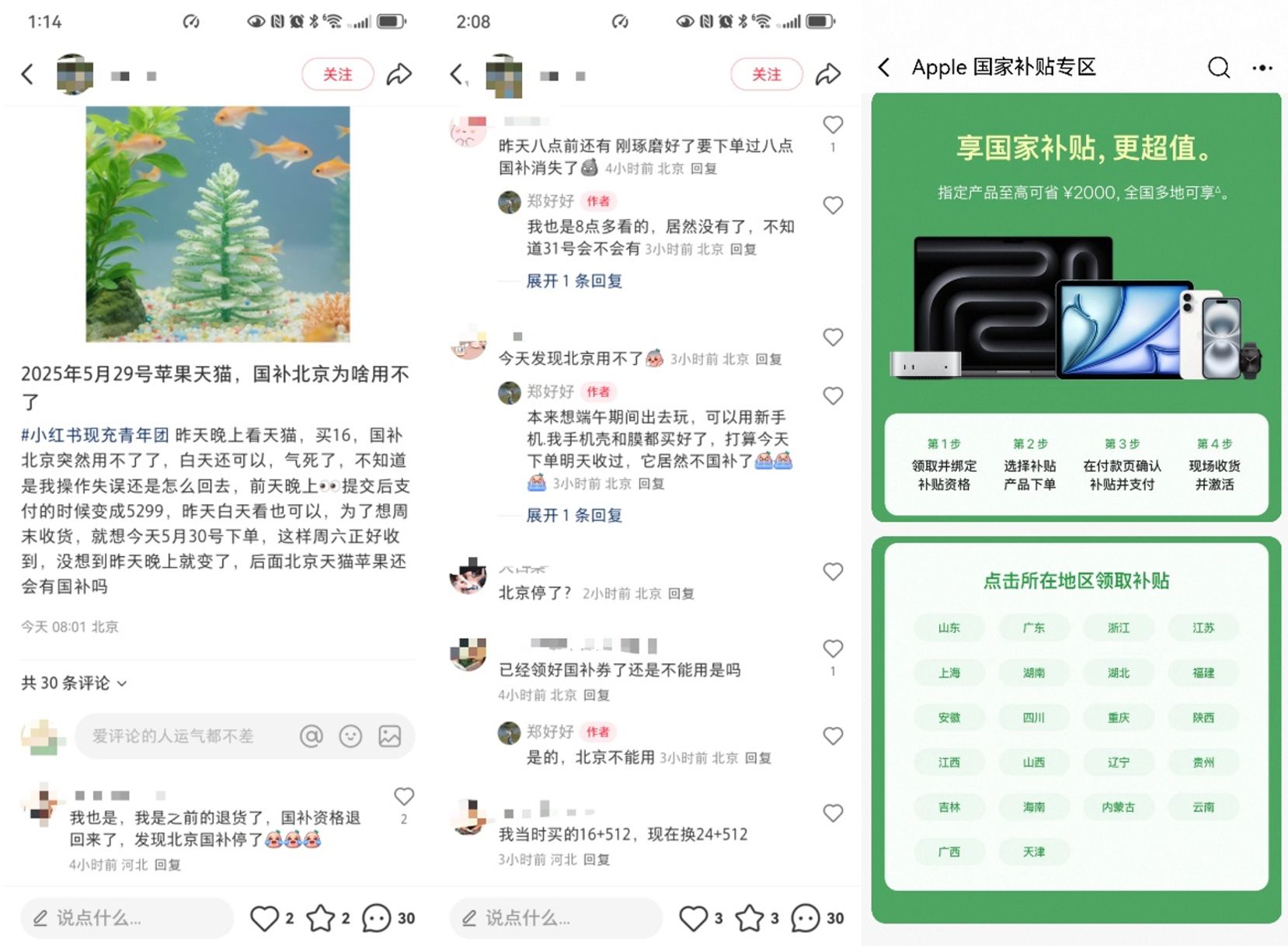 近期有网友反映5月29日苹果天猫下架了北京国补,而此时距离618正式开启仅剩一天,引发当地用户不满。不只是北京,目前天猫能享受的国补仅限22个省市,这就意味着,只有这22个省市的用户可以享受iPhone 16国补立减500元的优惠。而且,国补需要当面验机激活,无法跨区购买。