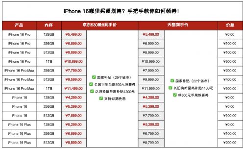 又到了一年一度的618了,各平台对 Apple 系列产品的促销也进入了白热化阶段。作为消费者最关注的年度数码产品之一,买 iPhone 16 在哪个平台下单成为了果粉们纠结的事情。有心的网友已经对 Apple 产品在京东和天猫的优惠活动、国补、价格以及服务等方面进行了综合对比。