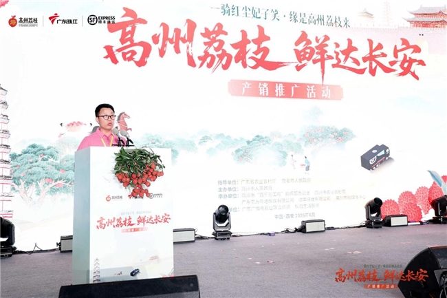 6月7日,由高州市人民政府主办,由广东广播电视台珠江频道、高州市农业农村局、顺丰速运有限公司承办的2025“高州荔枝鲜达长安”产销推广活动在西安盛大举行。代替千年前飞扬的马蹄声,如今从高州到西安,顺丰24小时内便能为西安人实现荔枝自由。