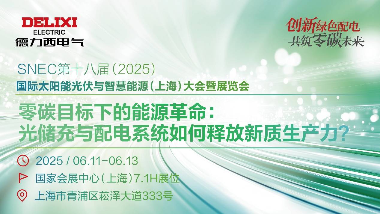当碳中和成为全球共识,当新能源革命重塑产业格局,一场关乎人类命运的技术盛宴正在东方启幕。2025年6月11日-13日,第18届SNEC国际太阳能光伏与智慧能源展(上海)将汇聚全球4000+顶尖企业、来自95个国家和地区的行业精英,以“光储充一体化”为核心命题,共绘零碳未来的技术图谱。在这场全球能源变革的“达沃斯论坛”上,德力西电气将以“创新者、领航者、变革者”之姿,携战略级新品、全场景解决方案与生态品牌思维强势登陆7.1H馆|C160展位,诠释中国制造的绿色转型密码。