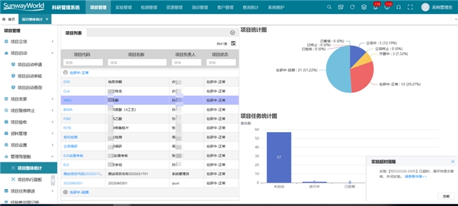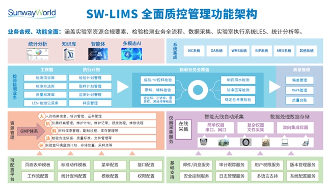 研发一体化平台包含了:研发产品生命周期管理系统(PLM)、科研项目管理系统(RDMS)、科研过程记录管理(ELN/LES)、临床前研究合规系统(GLP)、临床研究管理系统(GCP)、质控实验室信息管理系统(LIMS)、科学数据管理系统(SDMS)、质量管理系统、AI应用平台(SunwayLink)等。以下是主要软件功能简介: