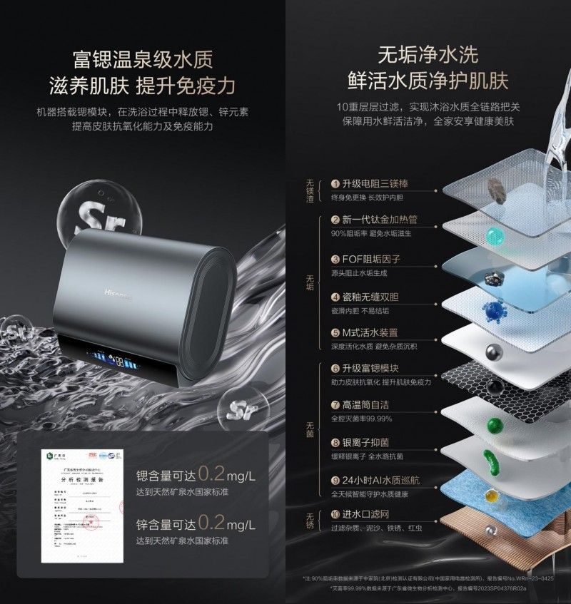 水质是关乎沐浴健康的核心要素,但杂质、水垢等隐患不仅影响沐浴体验,更是肌肤问题的隐形杀手。海信3D速热电热水器DS11Ultra创新搭载富锶模块,将健康沐浴提升至新高度。通过内置锶模块,其在洗浴过程中可持续释放对人体有益的锶元素及锌元素,能有效提高皮肤抗氧化能力及免疫力,有助于改善敏感肤质,舒缓干燥瘙痒,尤其对儿童、老年人皮肤问题有显著益处。