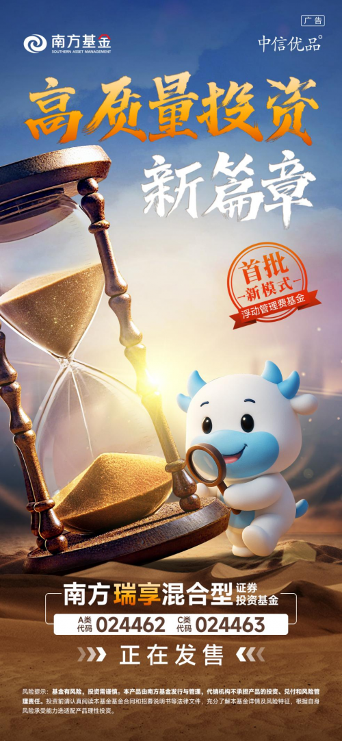 为积极响应中国证监会《推动公募基金高质量发展行动方案》(文中简称《方案》)的号召,南方基金推出了全新浮动费率基金——南方瑞享混合型证券投资基金(简称:南方瑞享混合;基金代码A类:024462,C类:024463),该产品通过创新机制与专业管理,有望为投资者提供差异化的权益投资选择。目前该产品已准入中信财富委资产配置委员会打造的“中信优品”产品池,由中信银行和中信证券联袂重磅发售。