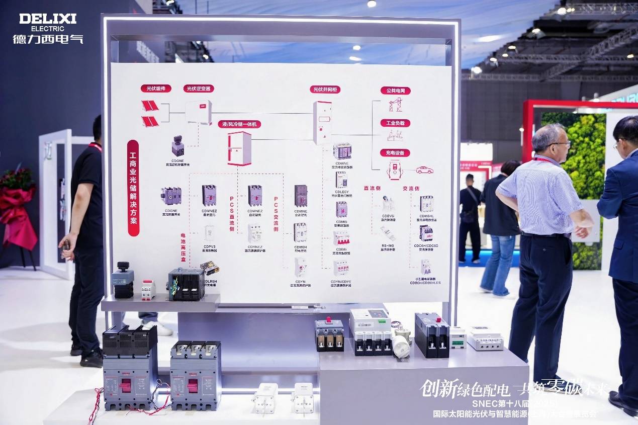 此外,德力西电气现场展示的工商业光储、户用光储、集中式光伏地面电站等解决方案,依托模块化设计和数字孪生技术,实现从“单品突破”到“系统重构”,推动新能源系统从“设备堆砌”迈向“价值共生”,为储能场景提供高效、智能的一站式解决方案,保障光储电站稳定可靠运行。