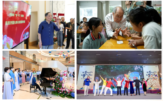 此外,长辈们在泰康之家主动健康、终身学习、价值创造和公益向善的观念引领下,实现“积极老龄化”,拓展退休生活的无限可能。在泰康之家全国各地社区,有超1000位居民参与了“追梦计划”:有人重拾画笔举办个人画展,有人参加集体金婚典礼;乐泰学院设立的健康、科技、人文、艺术、长寿时代5大学部,累计吸引超137万人次参与学习,终身学习蔚然成风;2024年,1400余位居民化身“银发志愿者”,在义工公益项目中实现价值再创造。正如泰康居民们所言:“在这里,年龄不是束缚,而是开启全新人生的钥匙。”