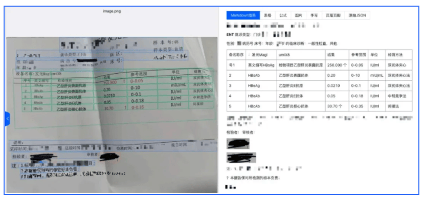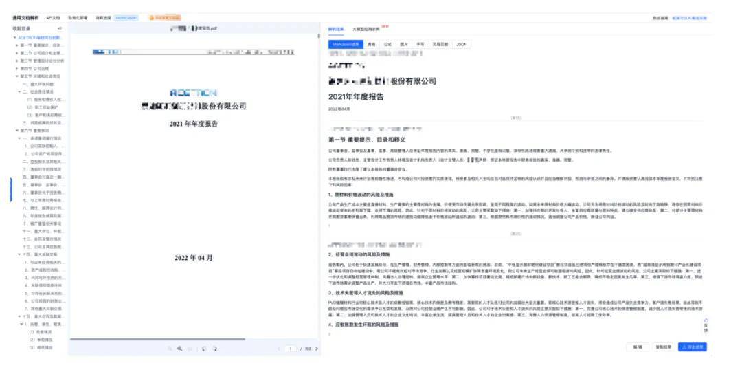 债券说明书、财报、审计报告中充斥着结构各异、嵌套复杂的表格。TextIn文档解析运用先进的深度学习模型,能够精准识别各类表格,含合并单元格、跨页表、框线残缺表等,准确切割单元格边界,完整还原表格结构,并将内容高保真地抽取为结构化数据如Markdown、JSON格式等。这彻底改变了传统人工录入或简单OCR识别导致的效率低下与错误率高问题,为后续的数据核对、逻辑校验、风险点筛查奠定了坚实基础。