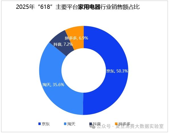 在以旧换新、国补叠加电商平台优惠政策的推动下,家用电器行业网络零售额实现较快增长,京东凭借高效的物流体系和完善的售后服务受到消费者青睐,销售额占比超五成。