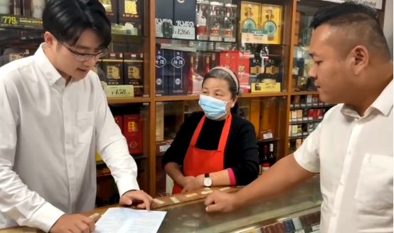 (市管员上门查看零售户延续申请资料)
