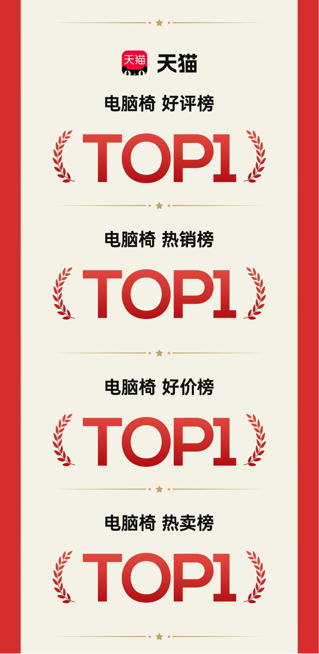 在天猫渠道,黑白调入选众多潮流榜单,连续拿下电脑椅好评榜、电脑椅热销榜、电脑椅好价榜、电脑椅热卖榜四个榜单TOP1,实力引领行业市场。