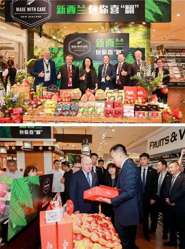 6月20日,新西兰贸易发展局在北京SKP商场BHG Market Place精品超市成功举办“新西兰包你喜翻”主题活动,旨在推广新西兰优质水果,并加强中新两国在水果贸易领域的合作。正在华进行访问的新西兰总理克里斯托弗·拉克森(Christopher Luxon)率领商务代表团出席本次活动。全球领先果蔬品牌都乐作为新西兰优质水果的重要合作伙伴及核心经销商,重点展示其针对新西兰高端苹果的市场推广成果。