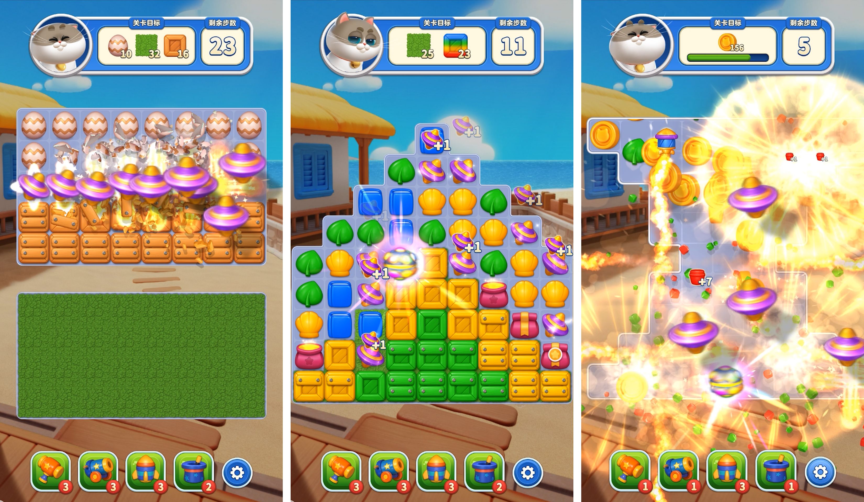 同时,《假日乐消消》也是一款全新的融合了“消除+建造”玩法的创新型消除游戏,玩家不仅能在游戏中享受爽快解压的消除乐趣,还能在可爱猫咪的陪同下,亲手打造度假海岛,和迷人的海岸风光作伴,尽情享受海岛度假的悠闲时光。