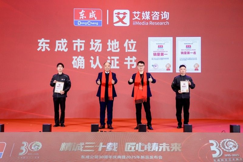 艾媒咨询为东成颁发市场地位确认证书