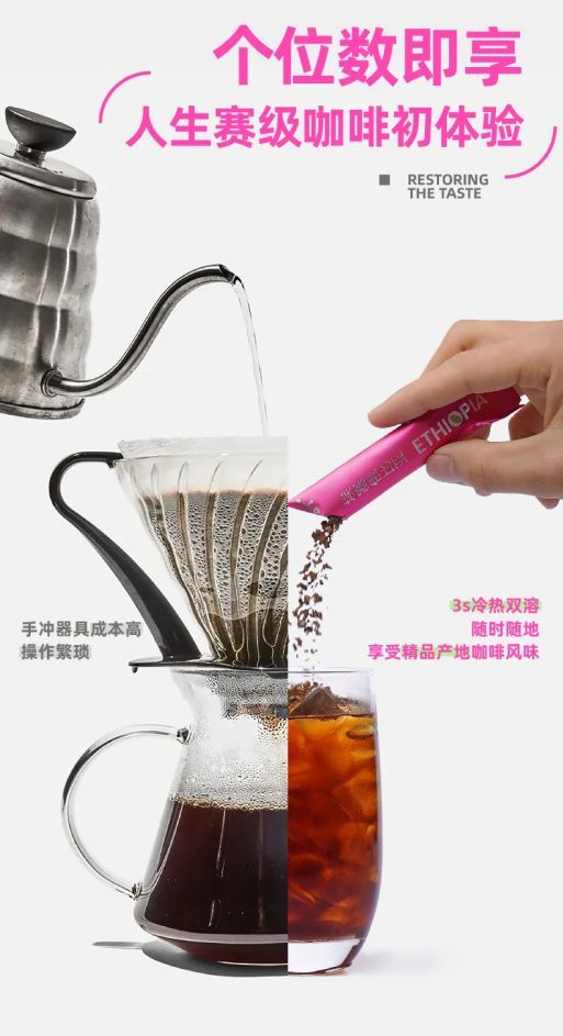 为保持风味稳定,采用-82℃急冻锁鲜技术,将新鲜现萃的咖啡瞬间冷冻成冻干颗粒,并结合香气回填技术,尽可能还原咖啡本真的香气与口感。配料只有咖啡粉,以确保滴滴纯萃。