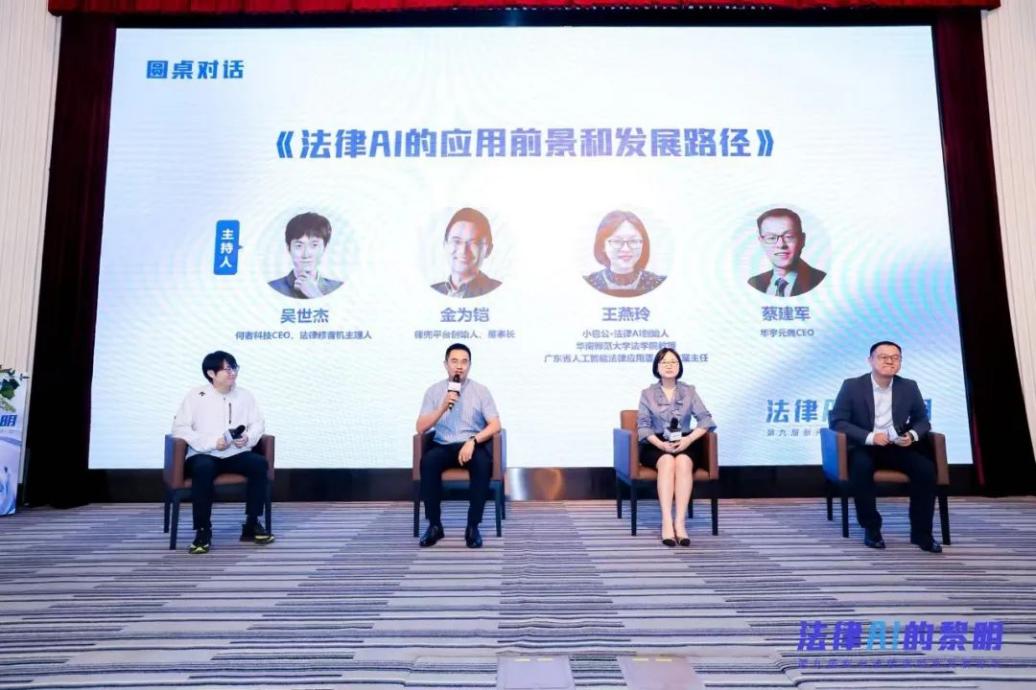 “法律AI的应用前景和发展路径”圆桌对话何者科技CEO、法律修音机主理人吴世杰主持,参与对话的嘉宾包括律兜平台创始人、董事长金为铠;小包公·法律AI创始人、华南师范大学法学院教授、广东省人工智能法律应用重点实验室主任王燕玲;华宇元典CEO 蔡建军。嘉宾们围绕法律AI的前沿技术、创新应用以及行业发展机会展开探讨。这场对话不仅为行业参与者提供了从技术研发到商业落地的完整思考框架,更对推动法律服务智能化转型具有重要参考价值。