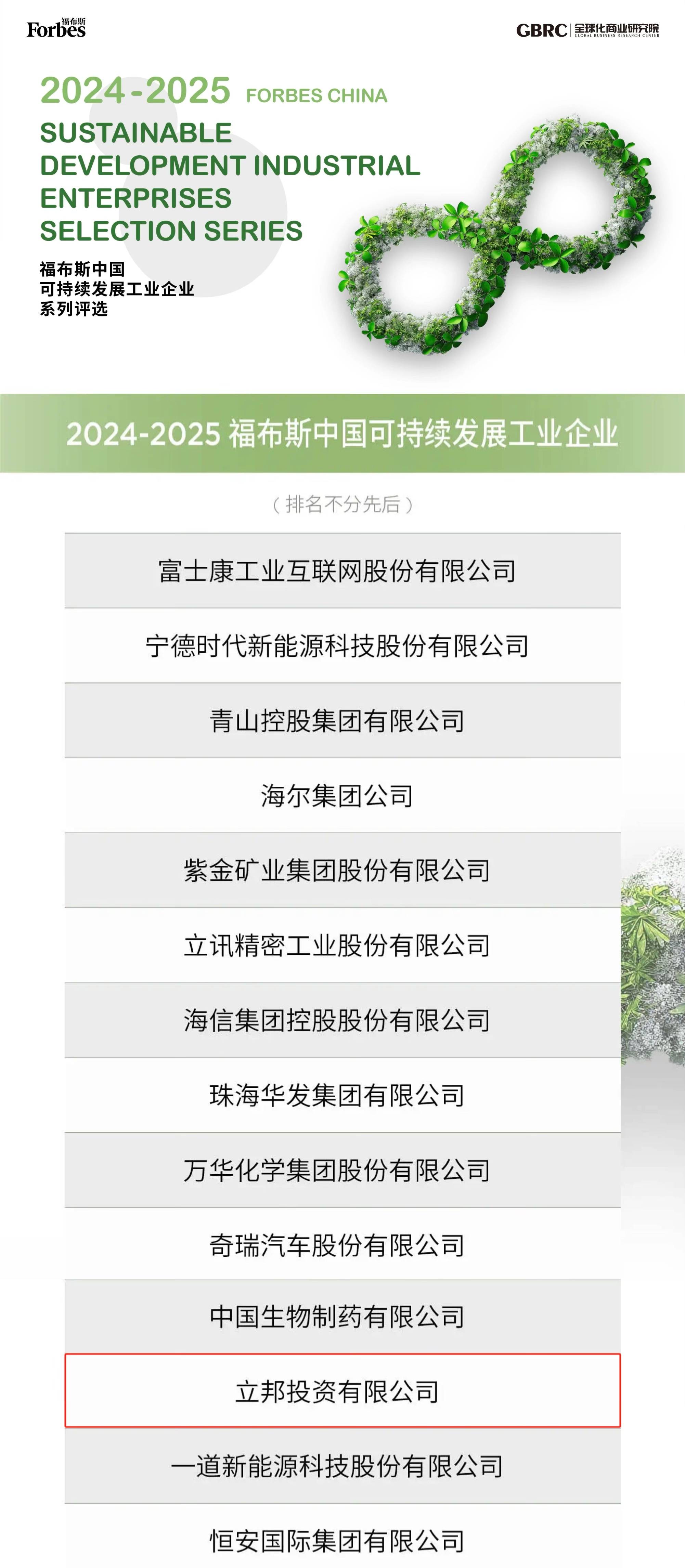 福布斯中国联合GBRC全球化商业研究院、TÜV南德学术机构正式发布“2024-2025可持续发展工业企业”评选结果。立邦中国凭借绿色产品技术创新及系统性碳排放管理实践,成功跻身40家主评选企业之列,成为涂料行业唯一入选主评选榜单的企业。
