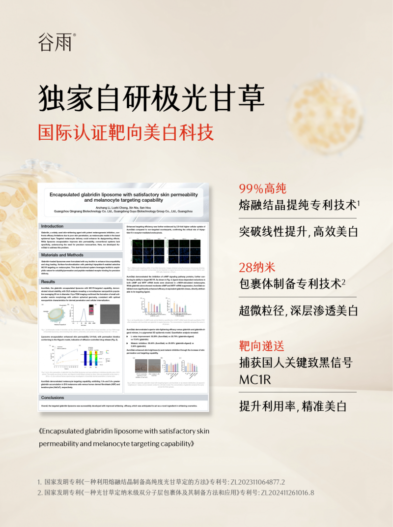 作为国内首个主打“光甘草定”美白的护肤品牌,早在品牌成立前的2007 年便成立专研护肤实验室,这使得品牌对光甘草定的研究长达18年之久并带来瞩目成果。