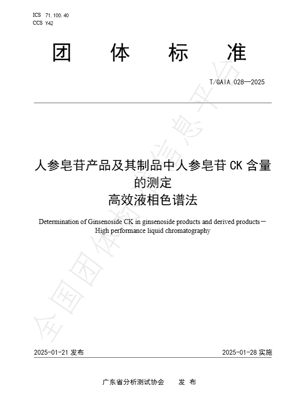 2025伊始,谷雨作为核心起草单位及方法验证单位参与的团体标准《人参皂苷产品及其制品中人参皂苷CK含量的测定高效液相色谱法》正式发布(标准编号:T/GAIA 028—2025)。该标准经广东省分析测试协会归口审查,批准发布实施。据悉,此项标准的制定和实施,可精确量化人参产品中关键功效成分稀有人参皂苷CK的含量,为人参类产品的品质评定提供了科学可量的依据标准,以引领行业更科学、更规范地健康可持续发展。据了解,截至目前谷雨已牵头即参与11项团体标准的制定,不断推动着中国特色原料的广泛科学应用及更适合中国人肤质的护肤品开发的标准体系建设。