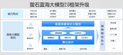 萤石蓝海大模型持续进化,在2025年6月迎来了全新升级的2.0版本,聚焦技术能力与场景应用的双重落地,通过多维融合、模态扩展与专项记忆三大技术路径,实现感知、理解、记忆能力的三重增强,同时助力垂直领域,做到专项能力、定向优化、精准服务,解决用户的痛点和难点。