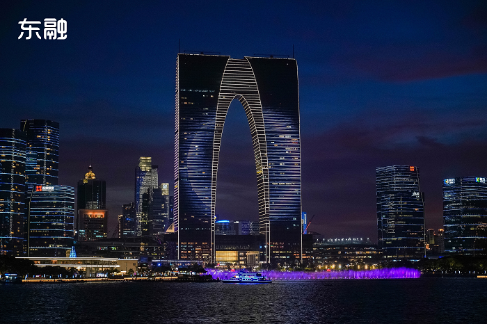夜幕降临,苏州金鸡湖华灯璀璨,随着游轮缓缓巡游,东方之门的霓虹轮廓渐次点亮,与"金鸡湖之眼"摩天轮的梦幻光影相交辉映,音乐喷泉随旋律起舞。大家纷纷以湖景为背景定格荣耀时刻,这场融合美食、光影与荣誉的湖上之夜,成为东融人2025年上半年征程中最闪亮的注脚。