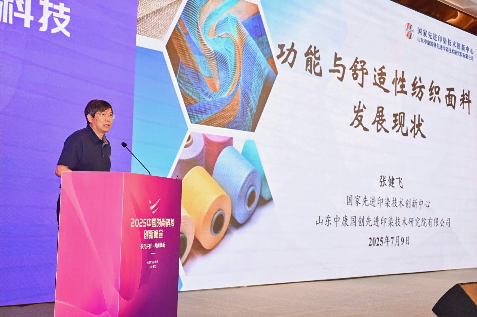 作为我国印染领域唯一的国家制造业创新中心,国家先进印染技术创新中心现有的股东单位和联盟成员涵盖印染全产业链领域90%,汇聚全国纺织印染领域70%以上的国家级创新资源。在“功能与舒适性纺织面料发展现状”的分享中,国家先进印染技术创新中心副主任、教授、博导张健飞对中心的特色板块,以及防水透湿功能面料、防紫外线功能面料、辐射冷却面料等功能与舒适性面料定义和种类、使用场景及应用案例进行了介绍。在检测方法方面,张健飞通过多种仪器分享了主观评价与客观测试方法。展望未来,他表示,纺织品的发展趋势将朝着功能性、舒适性与智能化方向迈进。