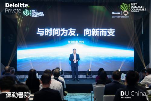 近日,由德勤中国、香港科技大学商学院和《哈佛商业评论》中文版联合主办的第七届中国卓越管理公司(Best Managed Companies,简称“BMC”)颁奖盛典在京举行。海信视像凭借在技术创新、全球化运营、社会价值管理等领域的卓越表现,被评选为“中国卓越管理公司”。在颁奖典礼现场,海信视像总裁李炜受邀发表了“与时间为友,向新而变”的主题演讲。
