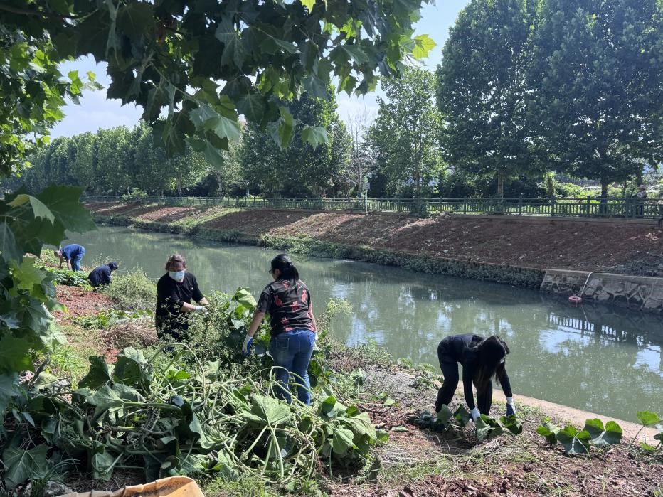 (图为武穴烟草党员下沉社区清除杂草,伍碧摄)