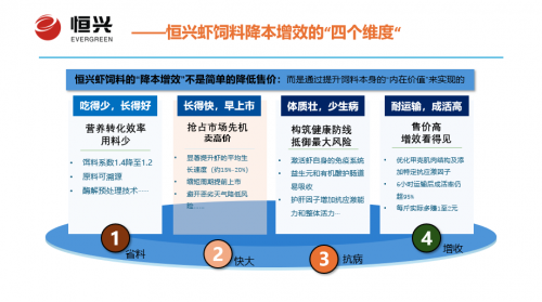 张: 喊口号容易,落到实处需要真功夫。恒兴虾饲料的“降本增效”不是简单的降低售价,而是通过提升饲料本身的“内在价值”来实现的。这主要体现在四个核心维度: