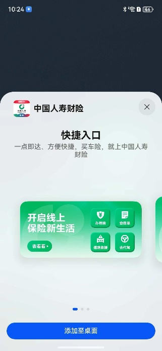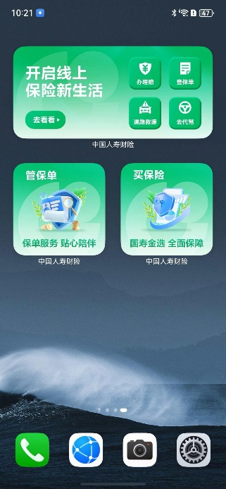 服务卡片能力则支持用户将常用的核心功能添加在手机桌面,用户无需打开App,点击功能卡片即可一键访问,快速办理保险业务。