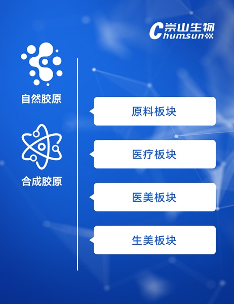 崇山生物已布局“自然胶原与生物合成胶原双技术路线”,覆盖医疗、保健、皮肤护理及科研四大应用场景。欣诗可作为消费端的重要出口,将与创伤护理系列(赛护迪®)、医学美容系列(帝百珂®)等专业线品牌形成技术共振。