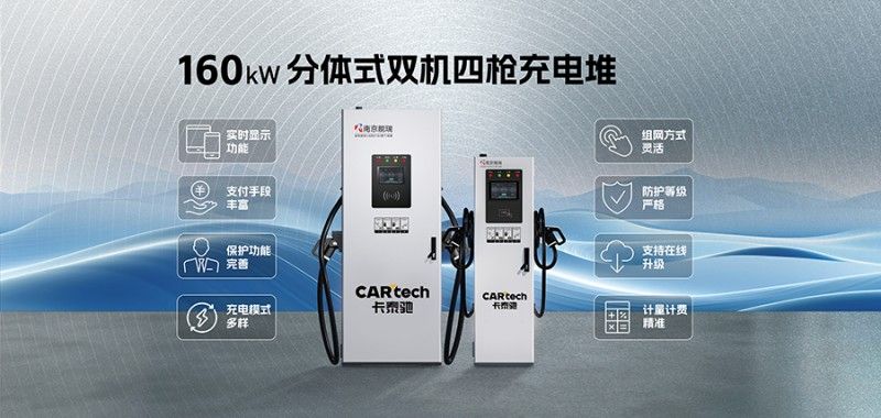 为精准匹配县域复杂场景需求,卡泰驰与南京能瑞还针对县域场景量身定制了160kW分体式双机四枪充电堆,单枪输出功率范围为40kW-160kW,能灵活适配不同车型,有效破解乡镇车辆多元化充电难题。