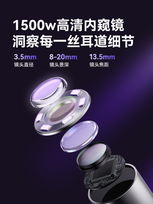 西圣FindX内置了旗舰级的影像系统,全新升级的1500万高清像素内窥镜,能够精准捕捉耳道每一处细节。此外内窥镜还运用融合了F2.0大光圈与多层光学镀膜镜组,在提升内窥镜清晰度的同时,让画面更还原耳道真实色彩和纹理。让每次使用都更加精准安全!