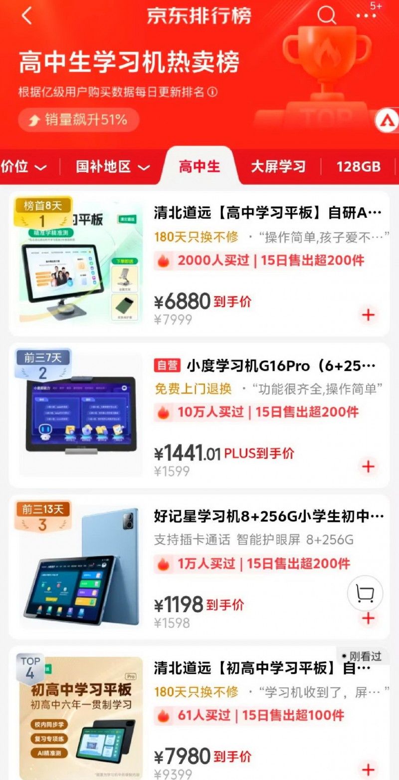 京东高中学习机排行榜: