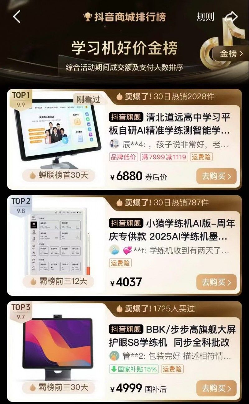 抖音学习机好价金榜: