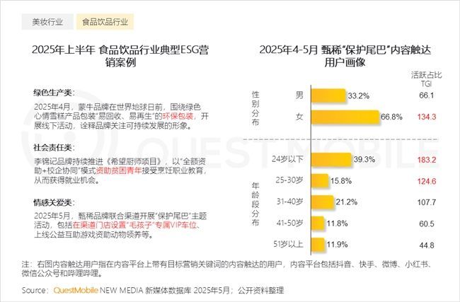 QuestMobile数据显示,2025年上半年,食品饮品行业广告主保持为视频贴片、综艺赞助等剧综内容营销领域的NO.1行业,占比分别达到37.3%和53.6%。